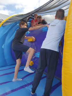 Hop hop hop, vandaag waren de springkastelen aan de top! We mochten misschien dan wel niet het internaat verlaten, maar dat wou niet zeggen dat we geen plezier konden maken. We lieten de springkastelen aan drukken, en niet alleen de interne maar ook de opvoeders genoten er enorm van.